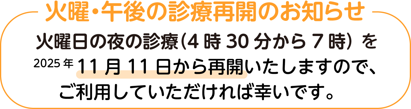 診療時間の予約をご希望の方は、お電話ください。TEL : 06-6965-7110(診療の状況により、お待ちいただくこともございます) 発熱の方は、受付にてお伝え下さい。